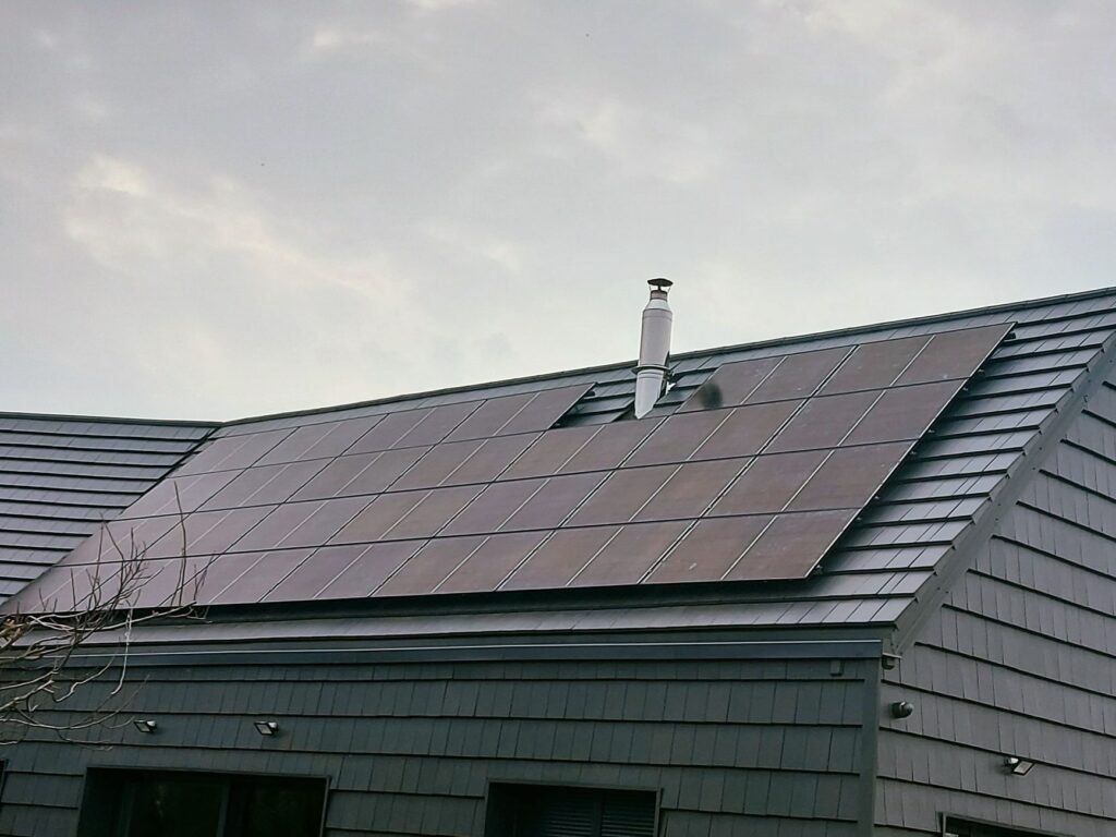 W tym przypadku instalacja fotowoltaiczna stała się idealnym uzupełnieniem architektonicznego stylu budynku.